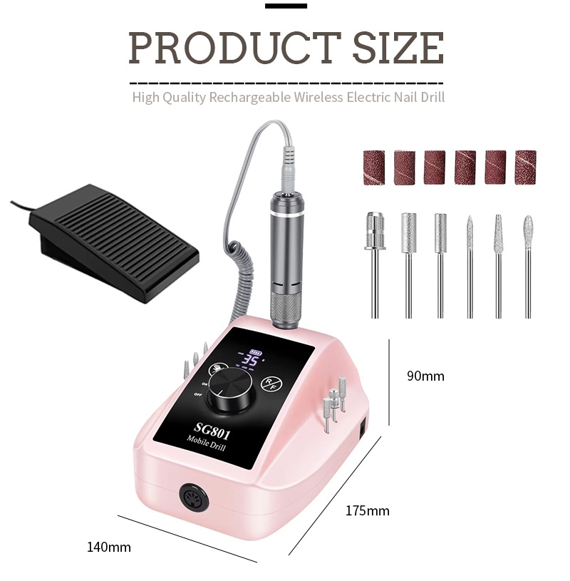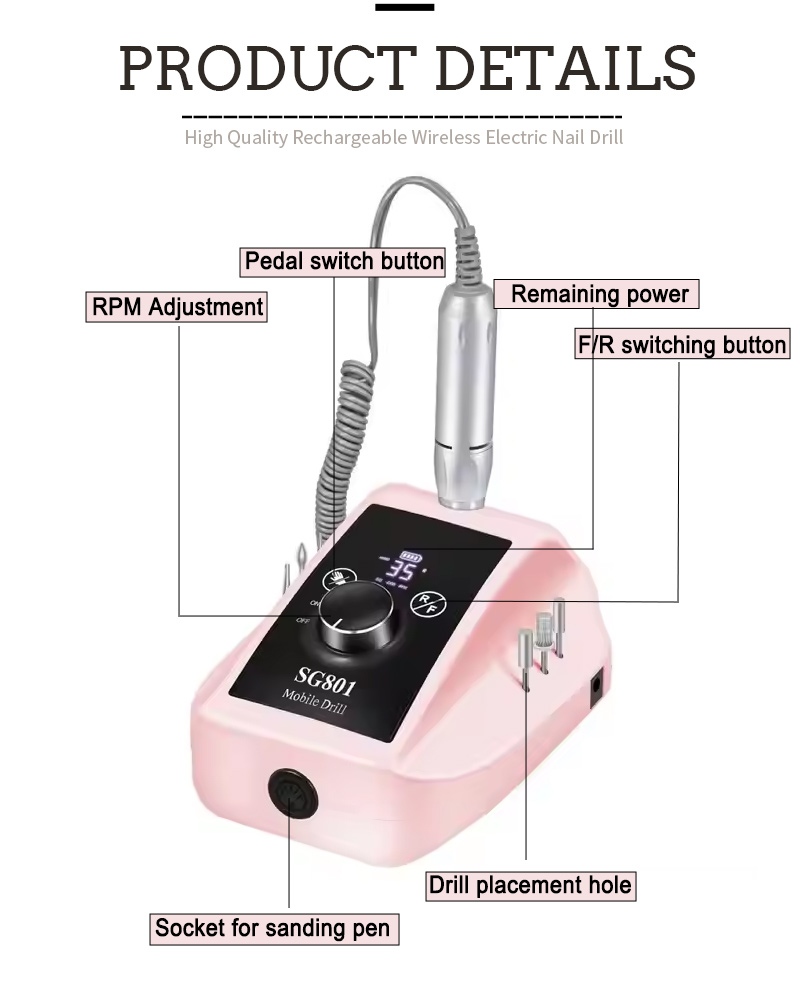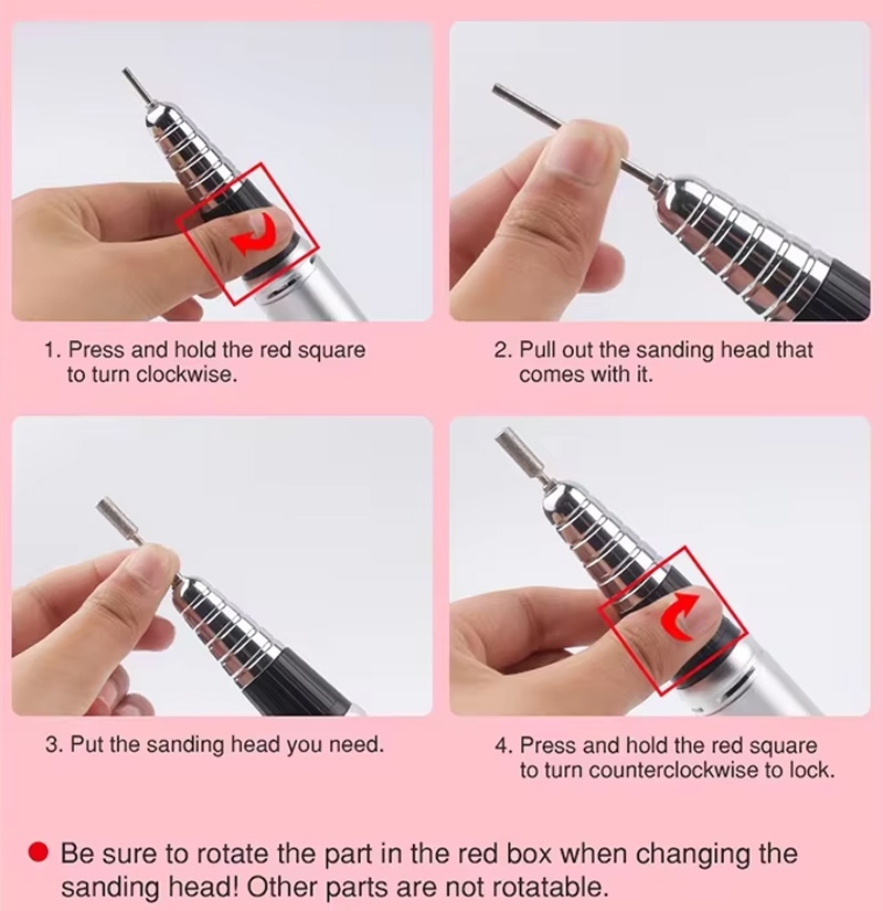 Ova električna prijenosna bušilica za gel nokte od 35 000 okretaja u minuti zamjenska metoda rada bušilice, to jest, priključi i izvuci, jednostavno i praktično, zamjena se može koristiti nakon završetka.