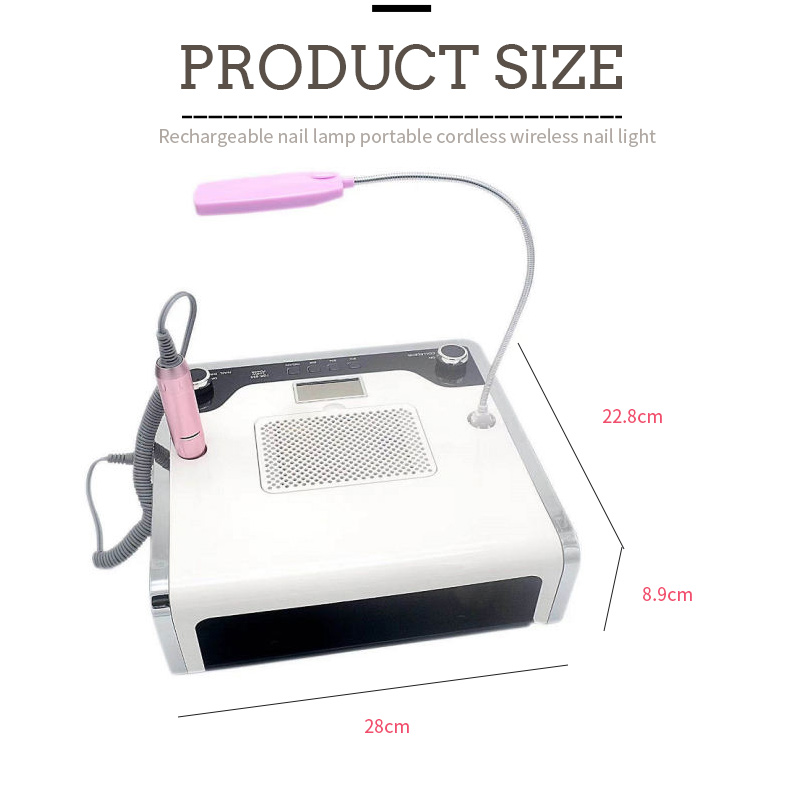 Dimenzije ove 4-u-1 višenamjenske lampe za nokte su 280 mm duljine, 228 mm širine i 89 mm visine, s velikim kapacitetom i mogućnošću korištenja ruku i nogu, što je vrlo zgodno.