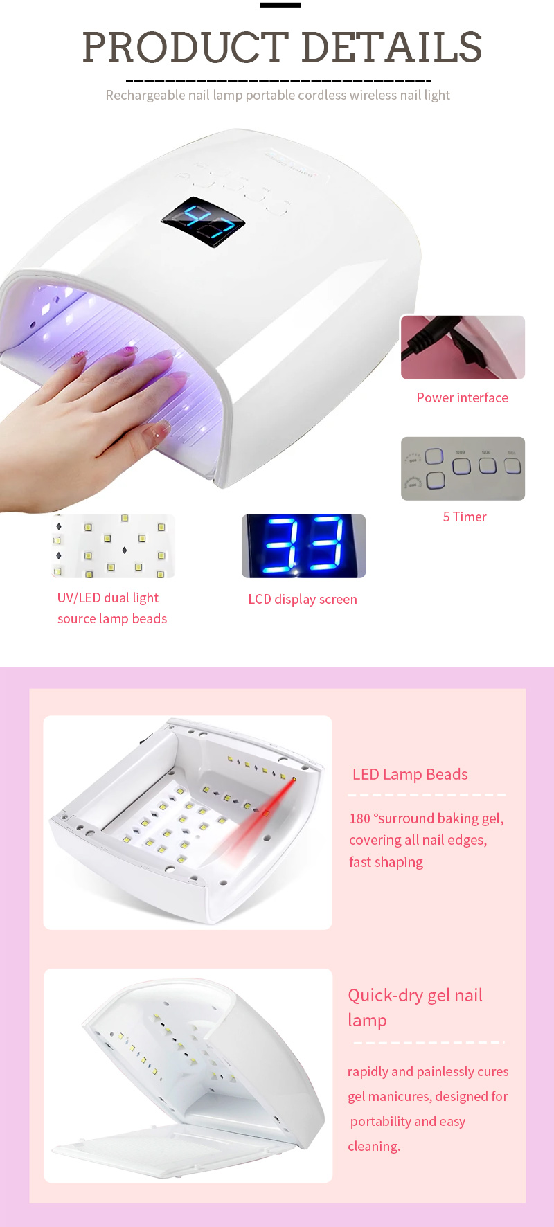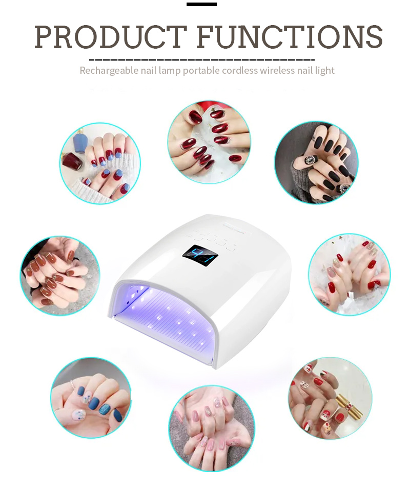 Proizvod osigurava ravnomjerno sušenje ljepila bez skupljanja. Njegovi dvostruki izvori svjetlosti pružaju nježno zagrijavanje kako bi se spriječila promjena boje ruku i naprezanje očiju, pogodan i za ruke i za noge, pružajući izvanredno brze rezultate sušenja.