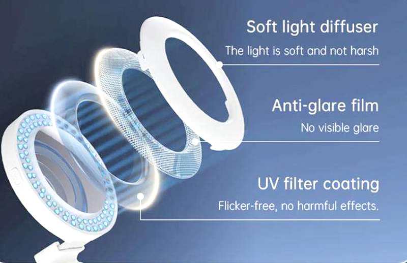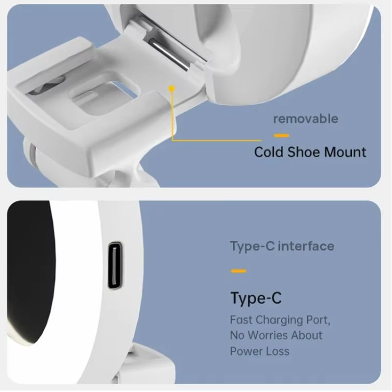 Ovo fotografsko svjetlo koje se pričvrsti ima elegantan i profinjen dizajn, emitira nježno osvjetljenje bez odsjaja koje simulira meku, prirodnu svjetlost zore. Pogodno za fotografsko osvjetljenje, prekrasno osvjetljava vaš subjekt.