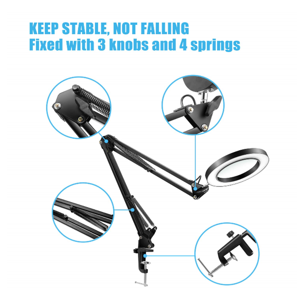 Sklopiva stolna svjetiljka s povećalom koja se okreće za 360 stupnjeva