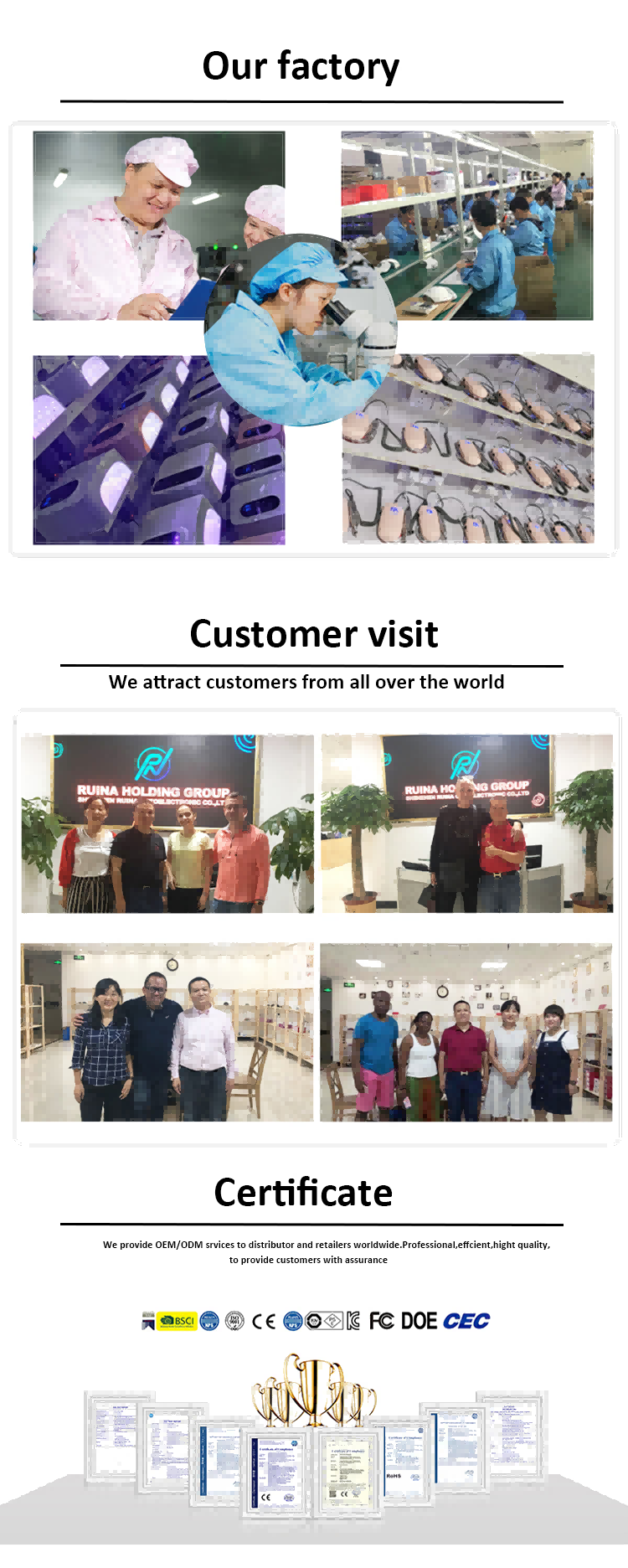Pružamo OEM/ODM usluge za globalne distributere i trgovce. Profesionalni, učinkoviti i izvanredne kvalitete, našim klijentima nudimo pouzdano jamstvo.