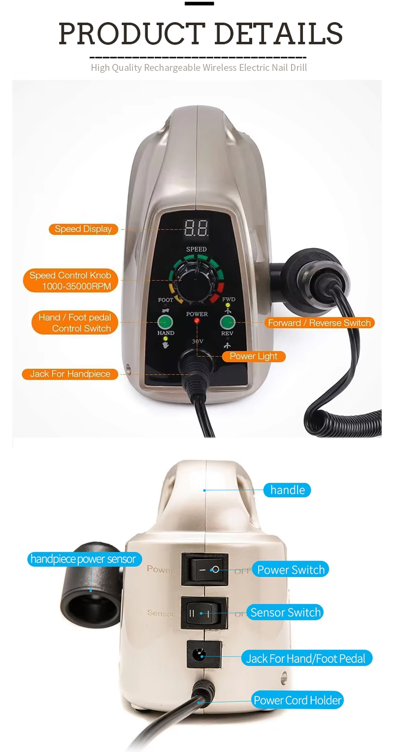 Značajke proizvoda i primjene velike brzine DM-014A Električna datoteka za nokte od 35 000 o / min za uklanjanje laka za nokte