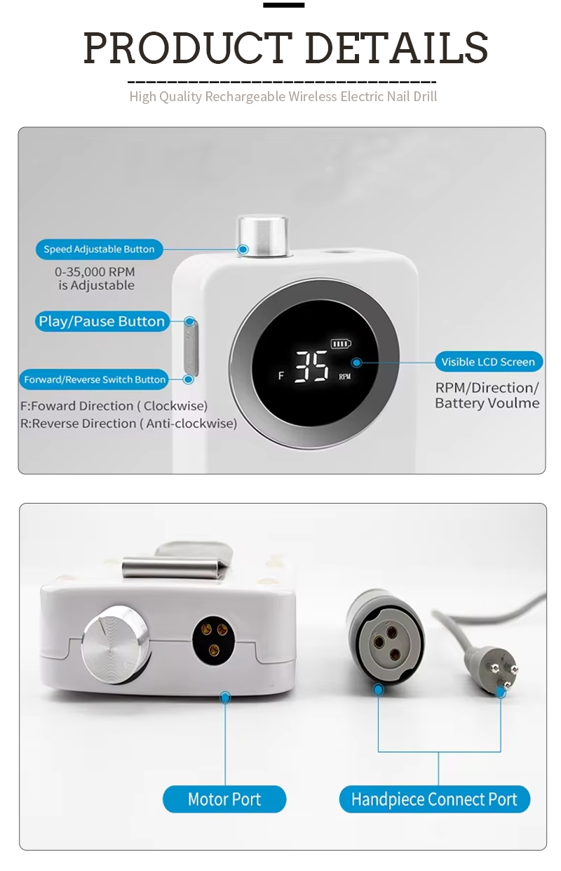 Prijenosna električna bušilica za nokte sa snažnim motorom 65 W 35000 o/min