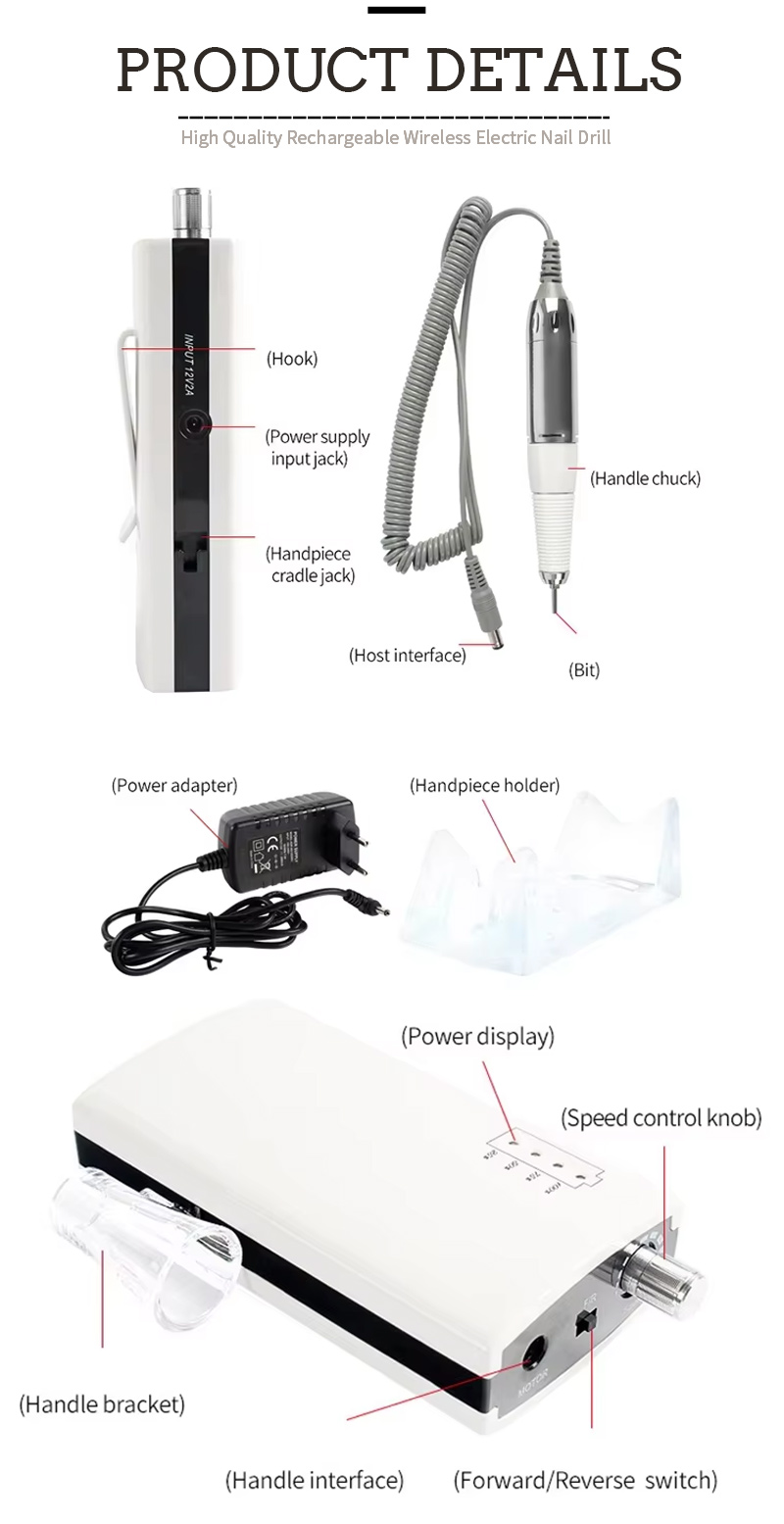 Punjiva bežična bušilica za nokte Professional 45w 40000rpm