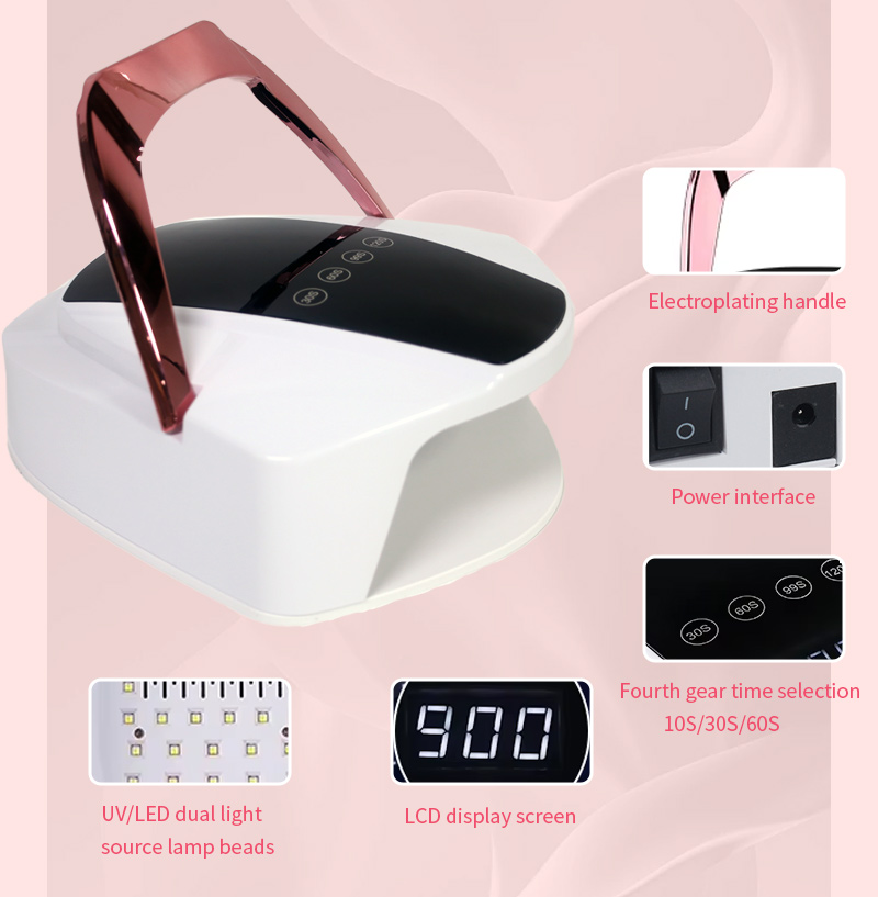 Proizvod osigurava ravnomjerno sušenje ljepila bez skupljanja. Njegovi dvostruki izvori svjetlosti pružaju nježno zagrijavanje kako bi se spriječila promjena boje ruku i naprezanje očiju, pogodan i za ruke i za noge, pružajući izvanredno brze rezultate sušenja.