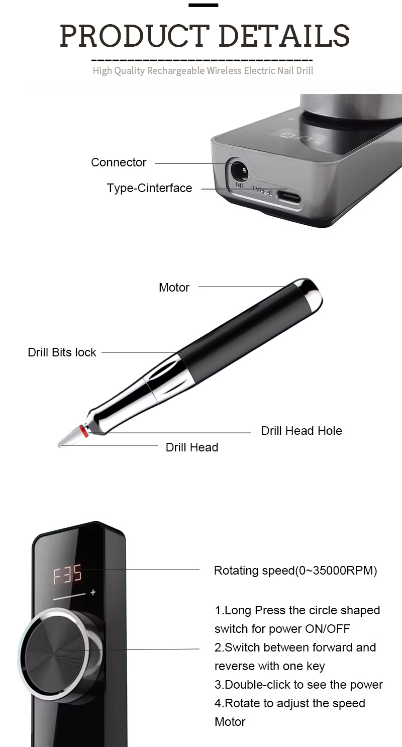 Značajke proizvoda i primjene modela 109 velike brzine 35.000 o / min Električna datoteka za nokte za uklanjanje poliranja