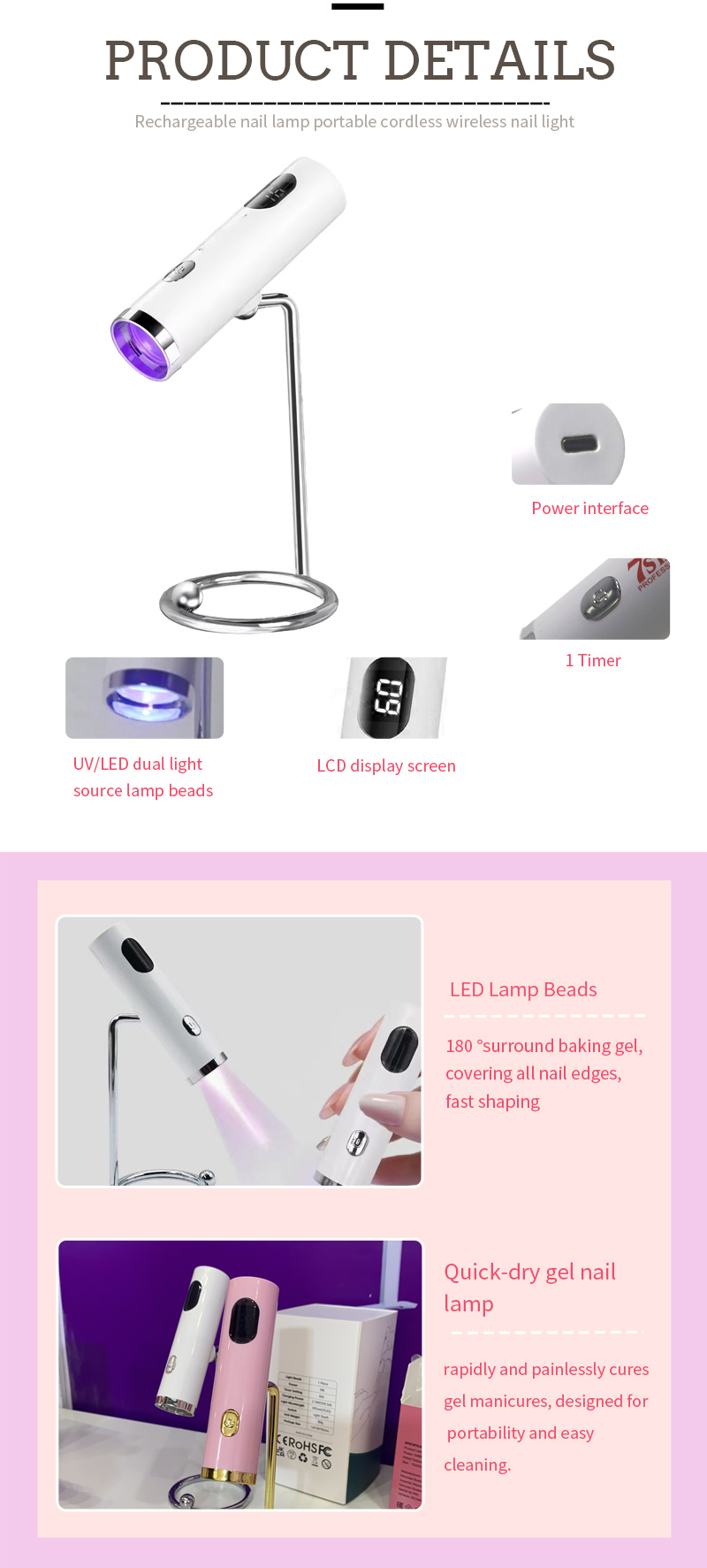 Proizvod osigurava čak i sušenje ljepila bez skupljanja. Njegovi dvostruki izvori svjetlosti pružaju nježno grijanje kako bi se spriječilo uklanjanje boje i opterećenje očiju, pogodno i za ruke i noge, dajući nevjerojatno brzo sušenje rezultata.