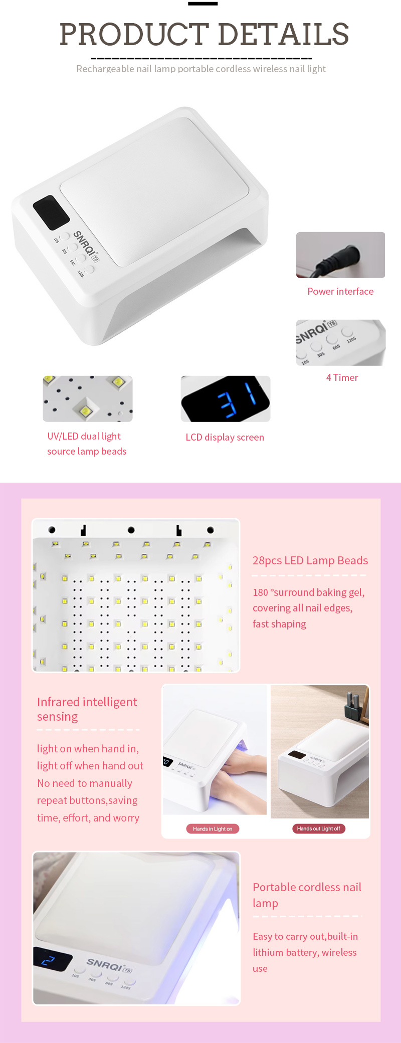 Profesionalna verzija za laganu lampicu za nokte od 128W ima dizajn utora, ručka u utor može se koristiti kao prijenosna uloga ručke, što ga čini prikladnijim za nošenje i stavljanje. Također izbjegava nedostatak ručke koja se lako razbija i povuče.