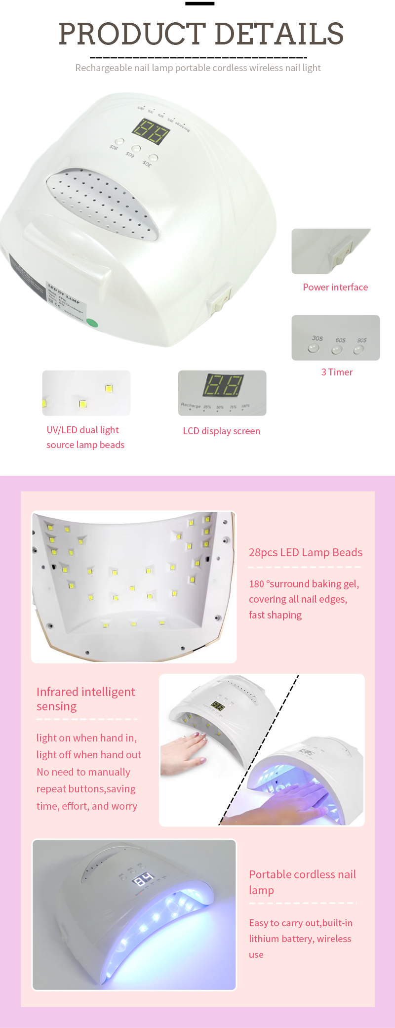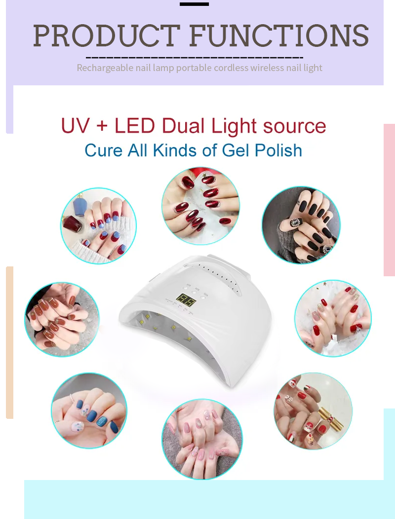 Proizvod osigurava čak i sušenje ljepila bez skupljanja. Njegovi dvostruki izvori svjetlosti pružaju nježno grijanje kako bi se spriječilo uklanjanje boje i opterećenje očiju, pogodno i za ruke i noge, dajući nevjerojatno brzo sušenje rezultata.