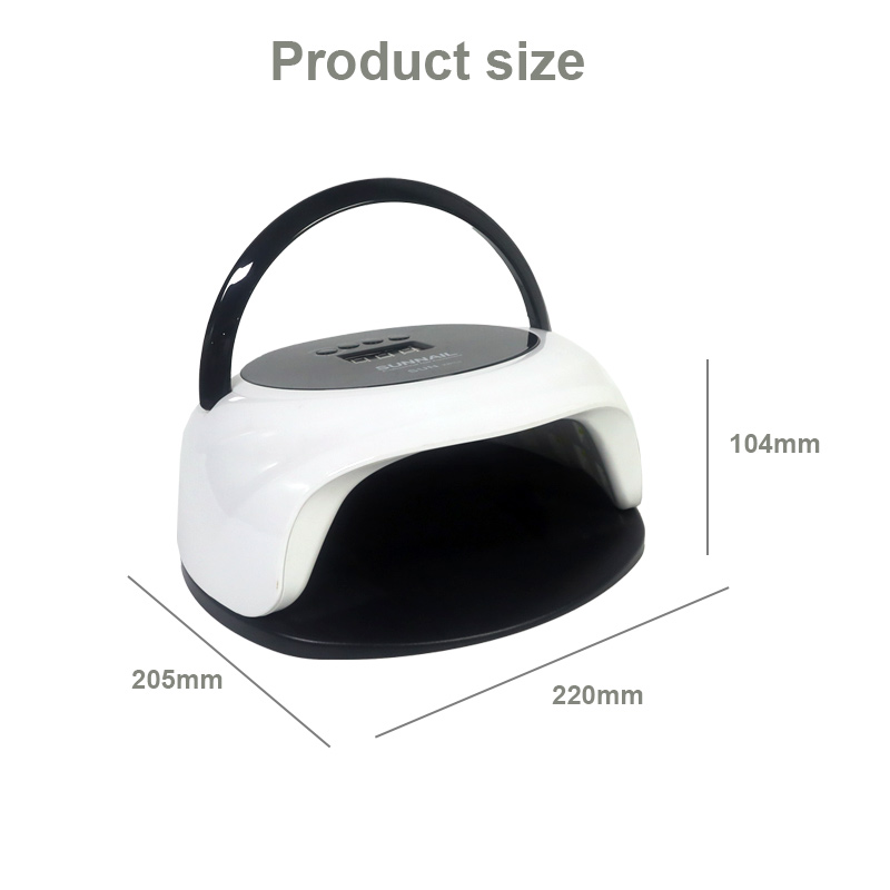 Dimenzije lampe za sušenje noktiju s funkcijom automatskog senzora su 205 mm duljine, 220 mm širine i 104 mm visine, s velikim kapacitetom i mogućnošću korištenja ruku i nogu, što je vrlo povoljno.