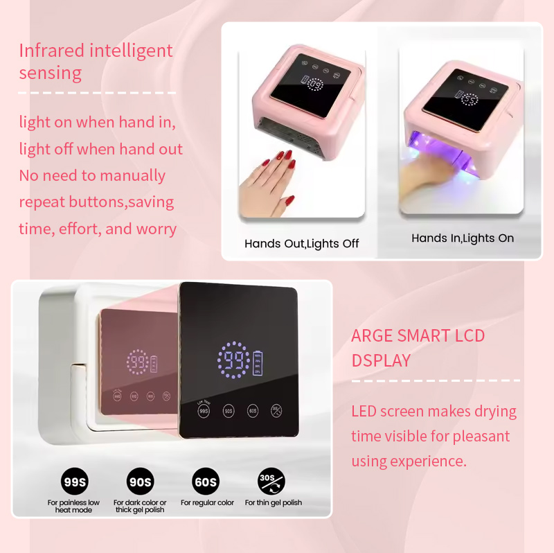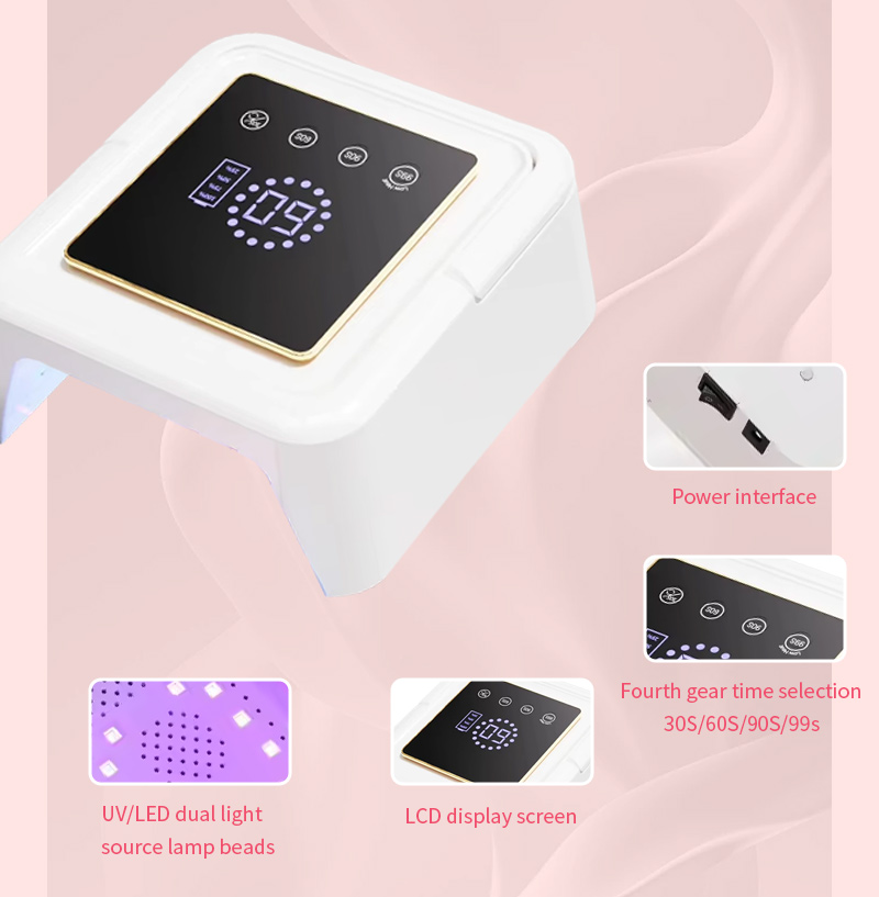 한국어Kao profesionalni proizvođač, zadovoljstvo nam je ponuditi prilagođenu novu lampu za brzo sušenje gela za nokte. Pružamo vrhunsku uslugu nakon prodaje i osiguravamo pravovremenu isporuku. Ovaj proizvod ima inteligentnu tehnologiju crvenog svjetla koja je nježna prema rukama, brzo sušenje od 5 sekundi, veliki zaslon osjetljiv na dodir i podržava funkcije mjerača vremena. S intuitivnim kontrolama gumba i sveobuhvatnim uputama za rad, čak ga i potpuni početnici mogu koristiti bez napora.