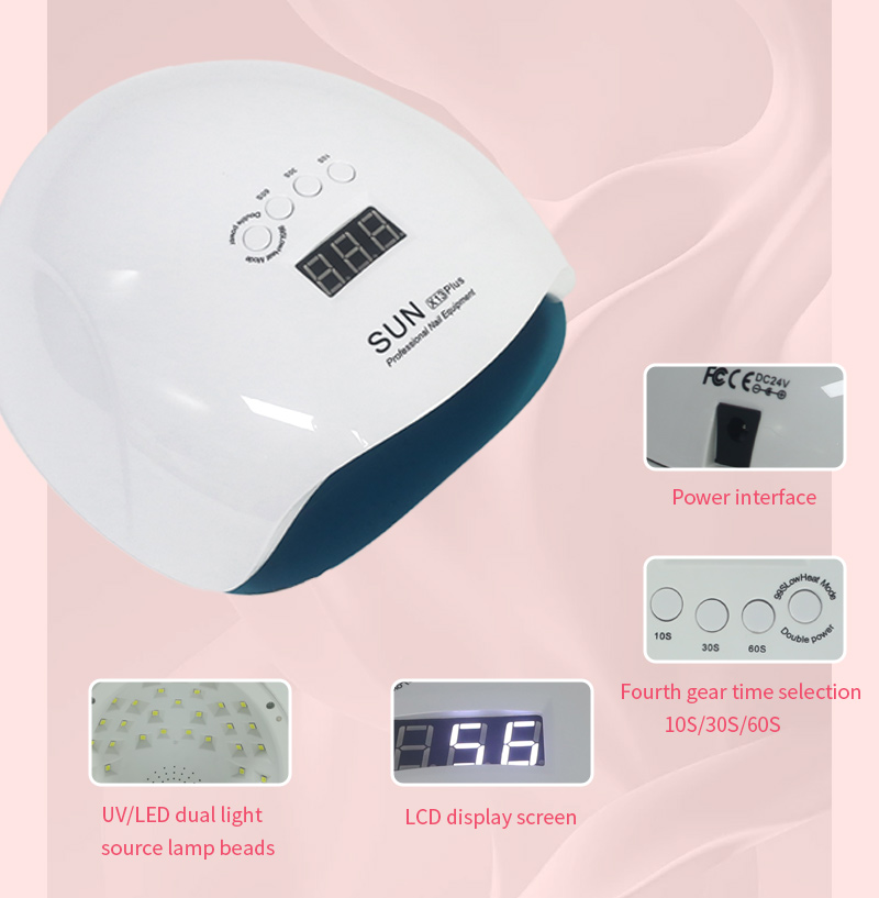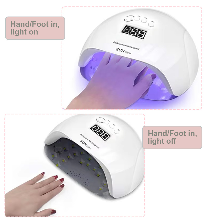 Proizvod osigurava ravnomjerno sušenje ljepila bez skupljanja. Njegovi dvostruki izvori svjetlosti pružaju nježno zagrijavanje kako bi se spriječila promjena boje ruku i naprezanje očiju, pogodan i za ruke i za noge, pružajući izvanredno brze rezultate sušenja.