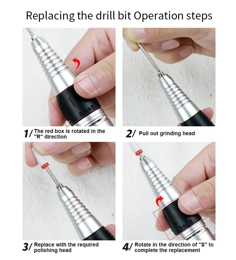 Ova profesionalna bežična električna bušilica za nokte zamjenska metoda rada bušilice, to jest, uključite i izvucite, jednostavno i praktično, zamjena se može koristiti nakon završetka.