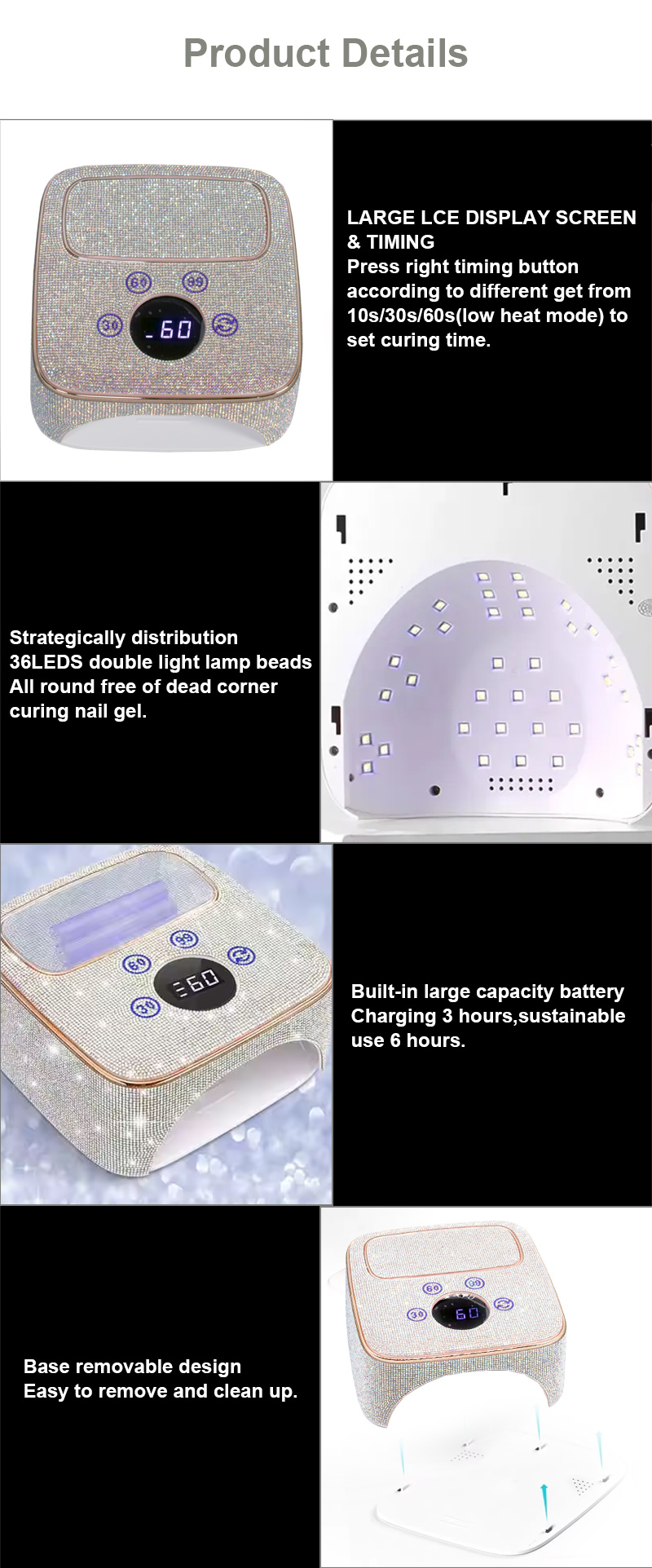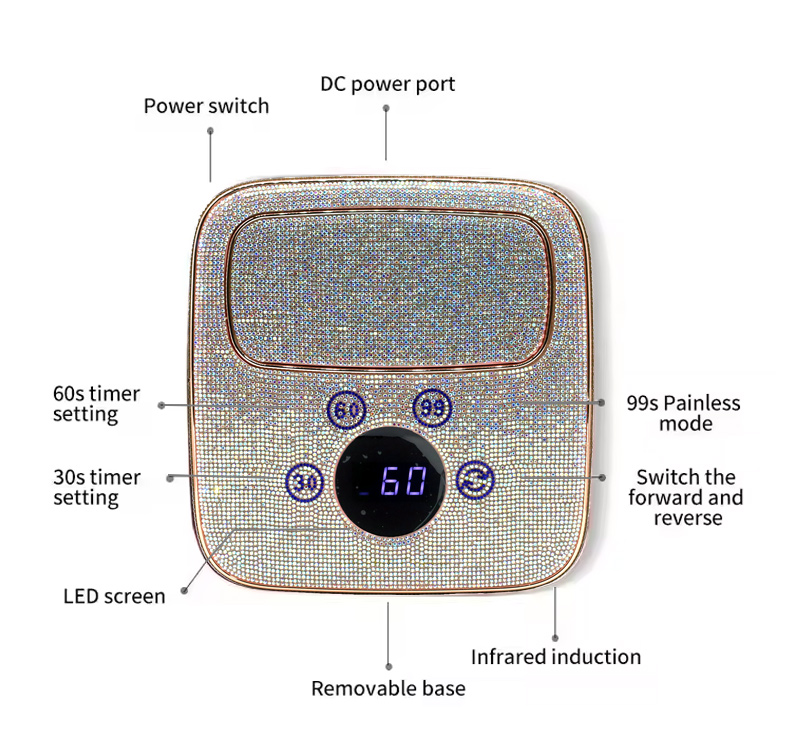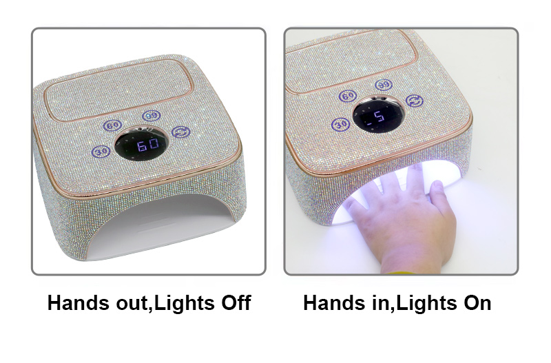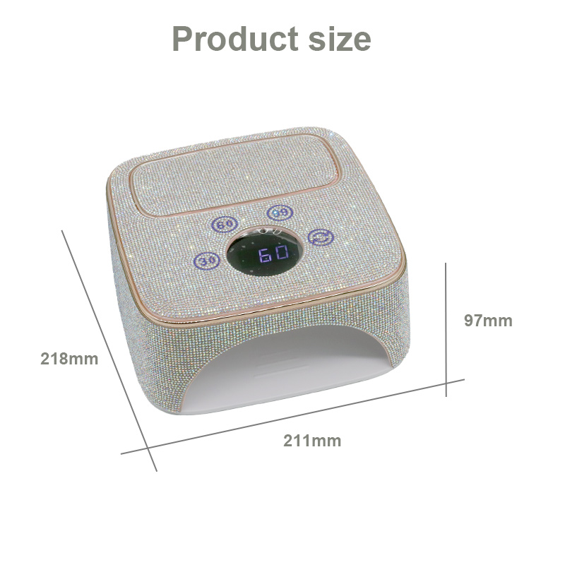 Proizvod osigurava ravnomjerno sušenje ljepila bez skupljanja. Njegovi dvostruki izvori svjetlosti pružaju nježno zagrijavanje kako bi se spriječila promjena boje ruku i naprezanje očiju, pogodan i za ruke i za noge, pružajući izvanredno brze rezultate sušenja.