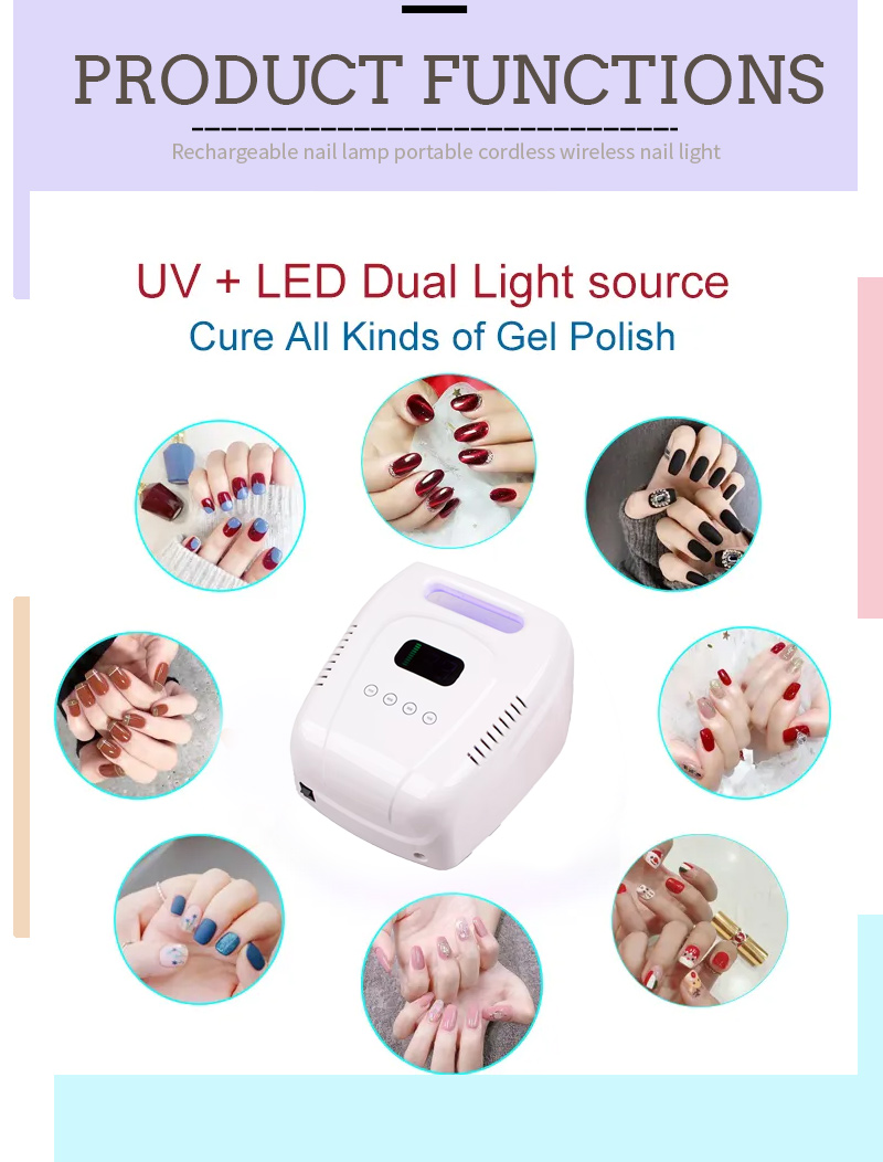 Profesionalni izgled proizvoda za laganu lampicu za punjivanje za nokte Profesionalni izgled proizvoda 160W ima dizajn utora, ručka u utor može se koristiti kao prijenosna ručka, što ga čini prikladnijim za nošenje i stavljanje. Također izbjegava nedostatak ručke koja se lako razbija i povuče.