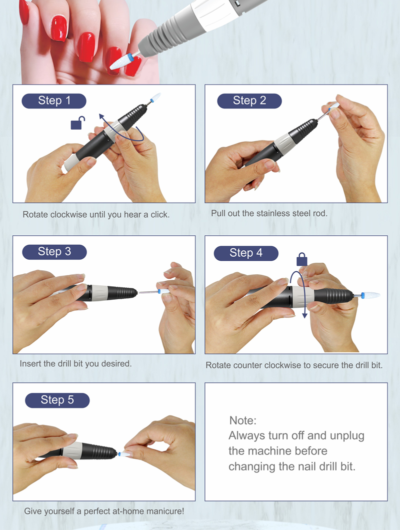 Set električnih bušilica za nokte za uklanjanje dipa 65w 35000rpm