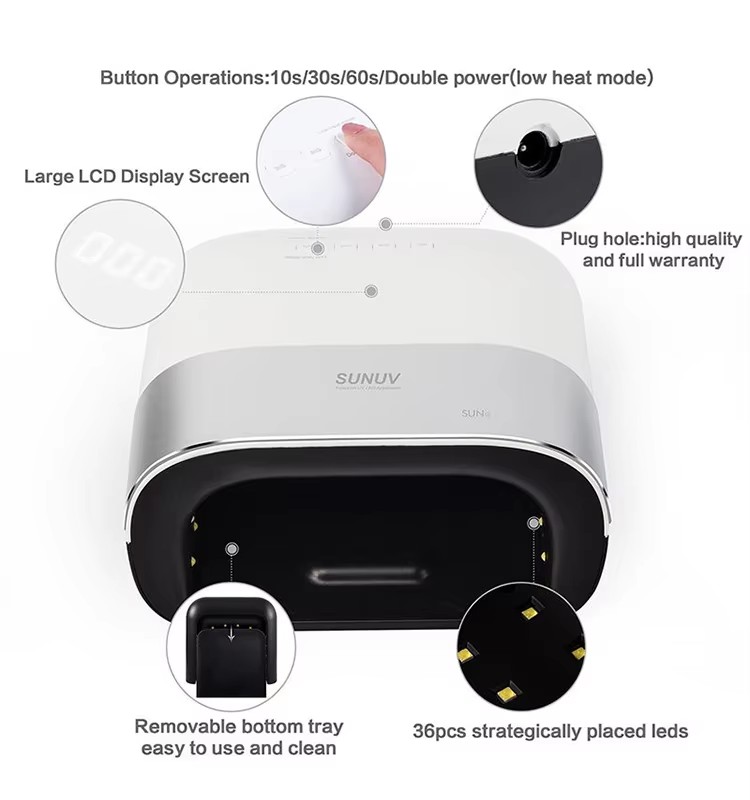 1)Punjivi salon za nokte UV lagana sušilica 48W Dizajn za prikaz proizvoda za prikaz proizvoda, dizajn zaslona za prikaz ovalnog vremena, zaslon visoke razlučivosti može jasno vidjeti vremensko skakanje vremena.