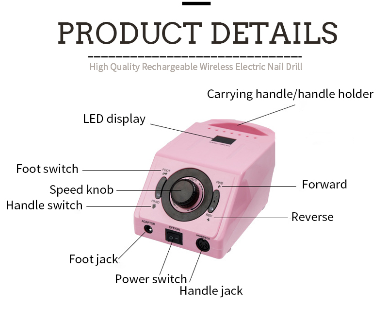 Kao profesionalni proizvođač, sa zadovoljstvom možemo ponuditi prilagođene ZS-716 brzih 35 000 o / min električnih datoteka za nokte za uklanjanje laka za nokte. Pružamo vrhunsku uslugu nakon prodaje i pravovremenu isporuku. Ovaj je model dio serije alata za njegu noktiju 202, pogodan za stvaranje akrilnih noktiju, puhanje površina noktiju i obrezivanje rubova proizvoda za osobnu njegu. Projektiran s preciznošću, sadrži elegantan dizajn, udoban stisak i visokokvalitetni motor koji mirno djeluje.